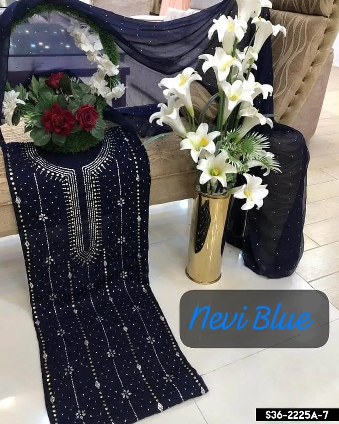 - Bamber Chiffon Mukesh Front Jaal Work Shirt