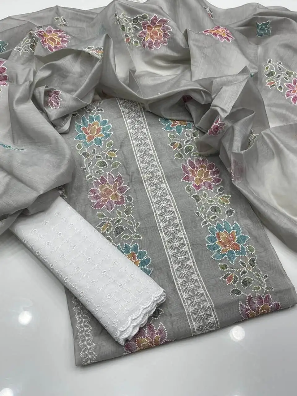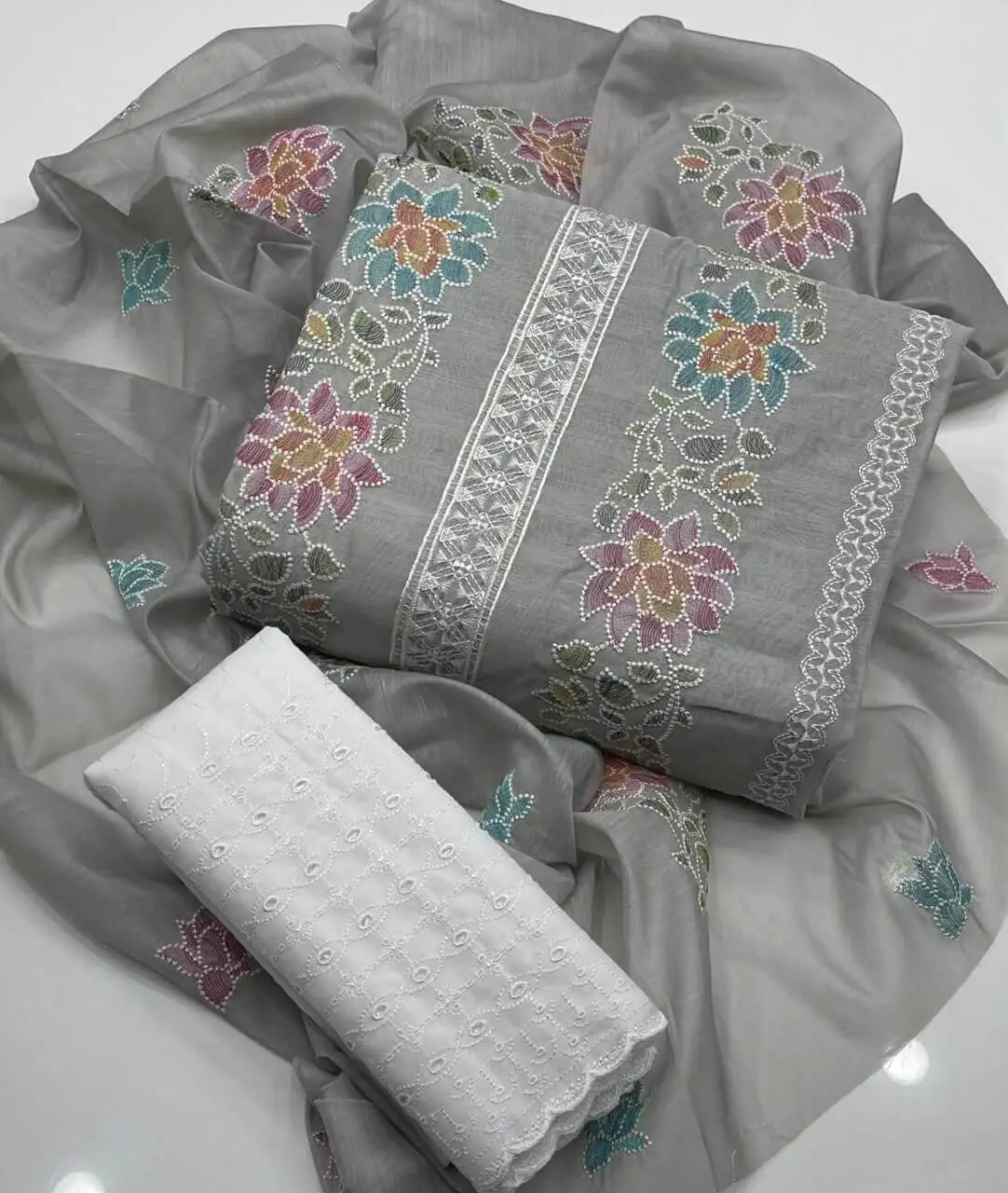 3 PC Unstitched Embroidered Paper Cotton Collection – S12