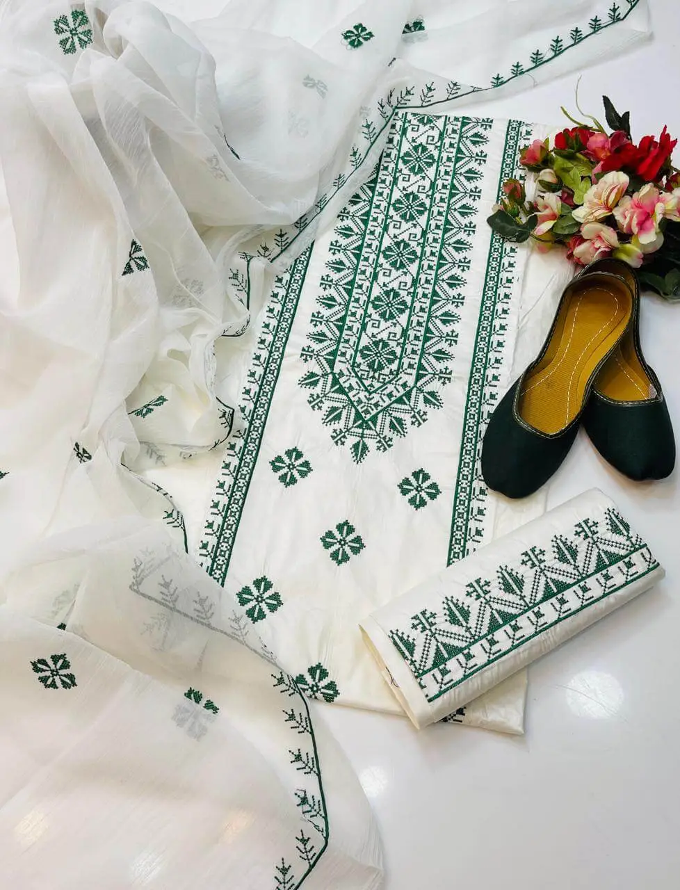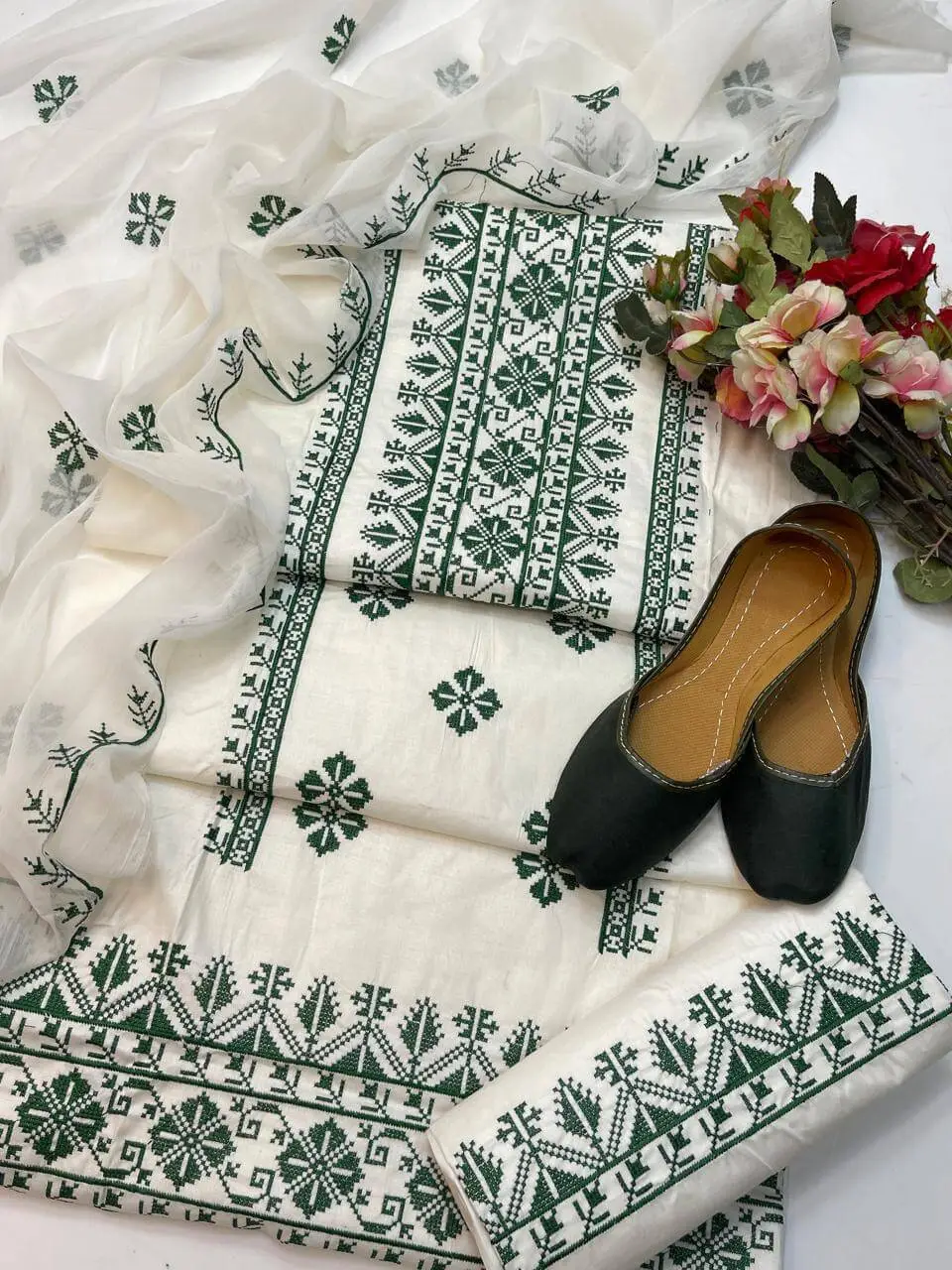 - Cotton Lawn Cross Stitch Embroidery Shirt