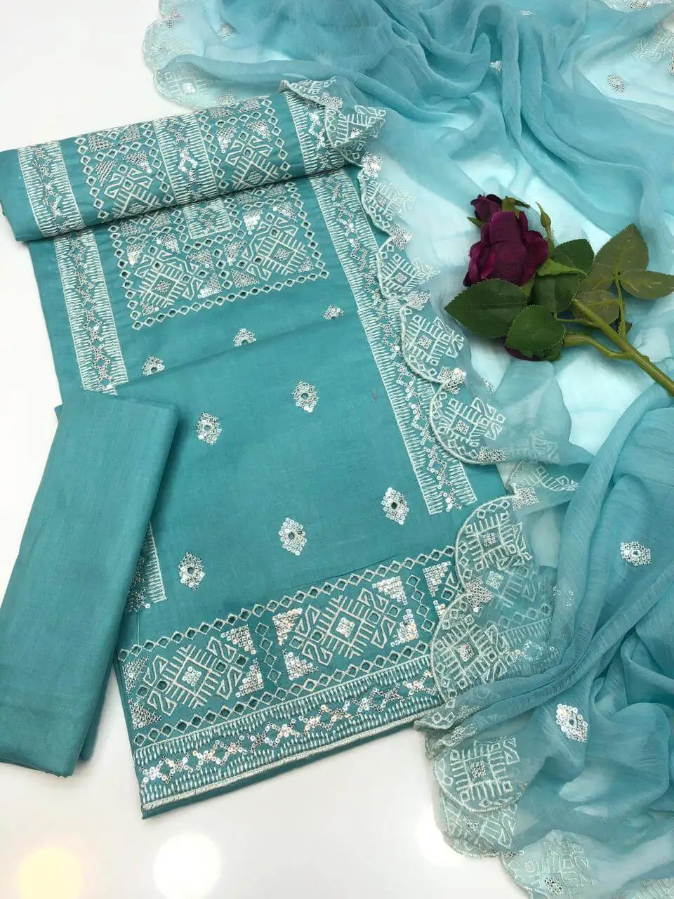 - Chiffon 2 Sided Cut Work Border Embroidered Dupatta
