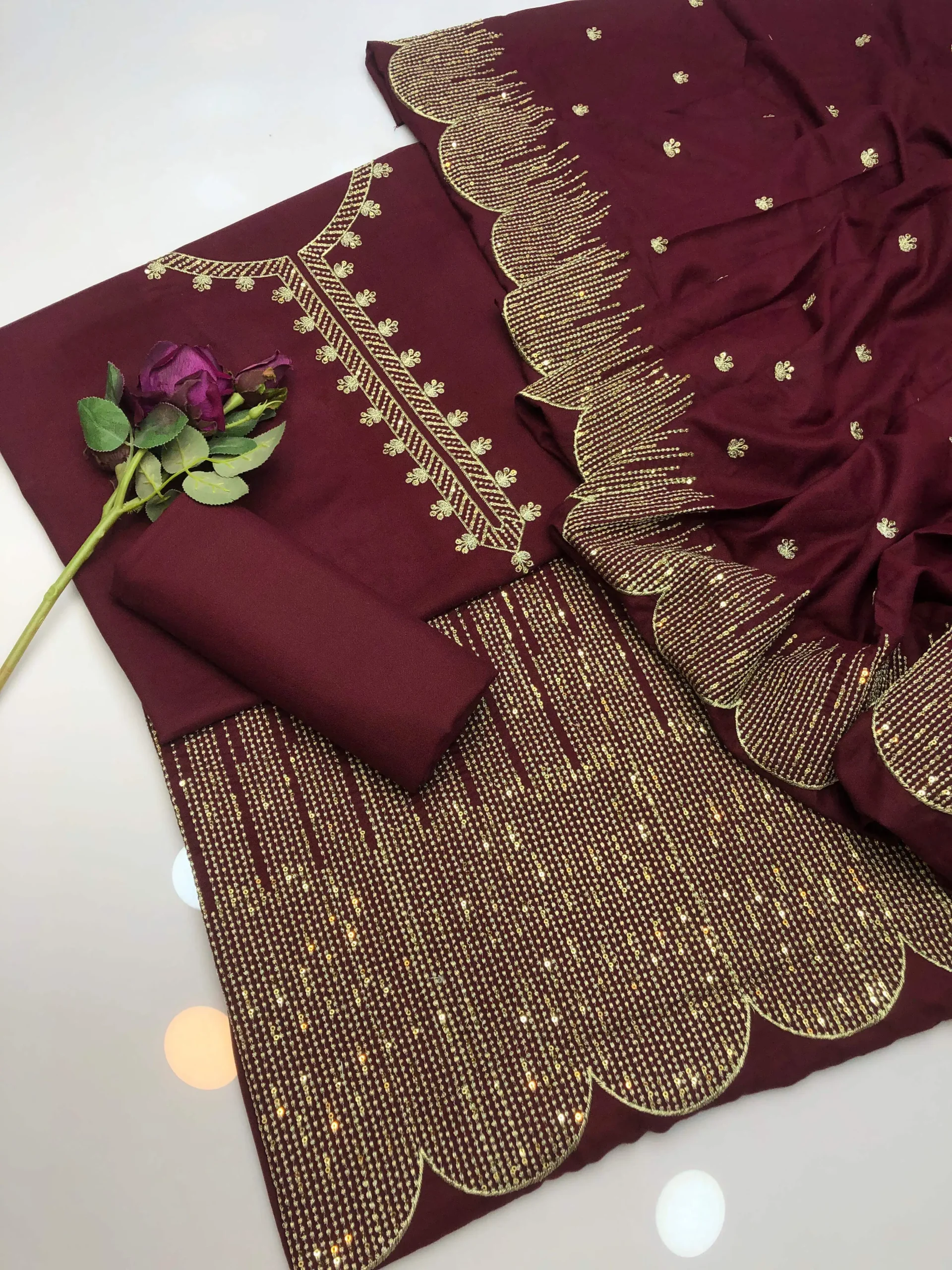 - Dhanak Tila Zarri Gala Heavy Daman Work Shirt & Trouser