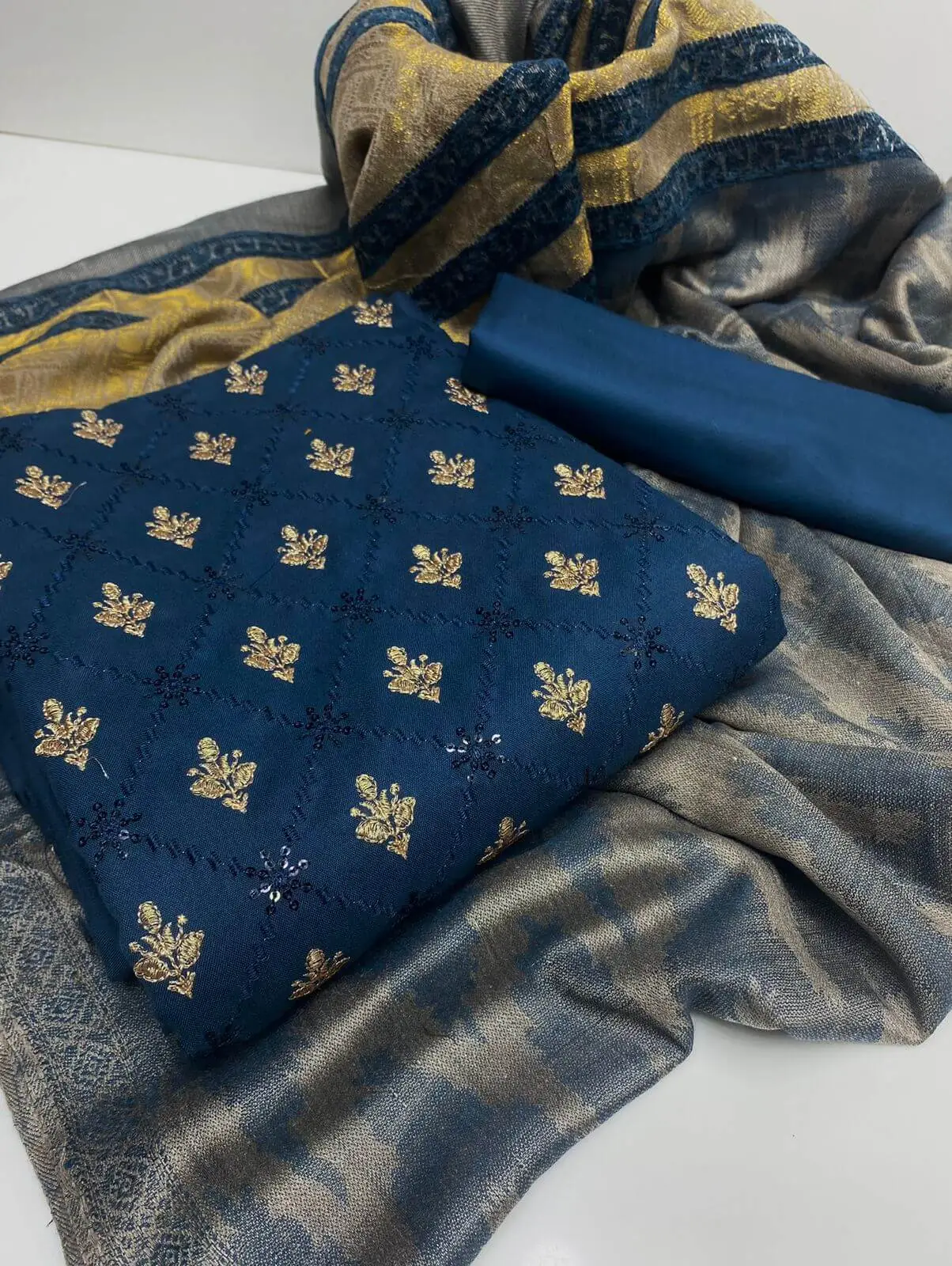 - Dhanak Breeze Heavy Jaal Embroidery With Sequence Work Shirt