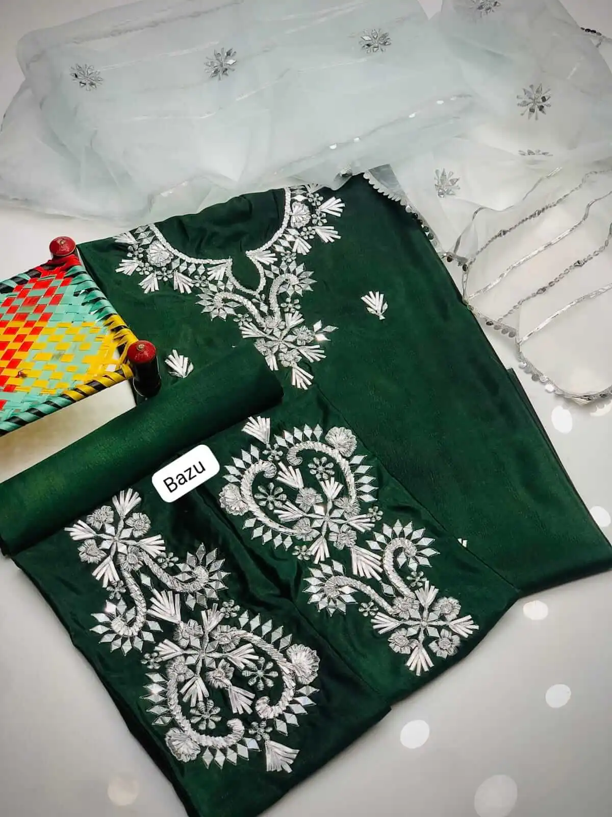- Pure Indian Organza Mirror Work 4 Sided Lase Border Dupatta